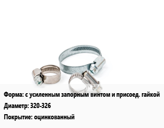 Хомут с усиленным запорным винтом и присоед. гайкой D=320-326 оцинкованный, упаковка 50 шт цена от 3 429 Тг / шт, где купить, условия доставки в Караганде и Карагандинской области