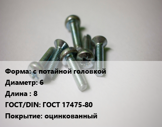 Винт с потайной головкой 6х8 ГОСТ 17475-80 оцинкованный