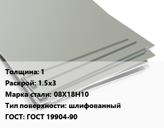 Лист нержавеющий 1 1.5х3 Сталь: 08Х18Н10 Тип:шлифованный ГОСТ 19904-90