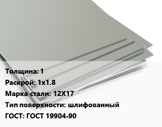 Лист нержавеющий 1 1х1.8 Сталь: 12Х17 Тип:шлифованный ГОСТ 19904-90